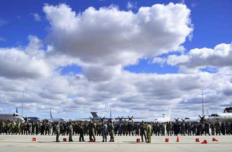 Cuộc tìm kiếm tiếp tục mở rộng xuống tới nam Ấn Độ Dương với lực lượng tìm kiếm được huy động từ rất nhiều quốc gia. Trong ảnh là các phi công đến từ rất nhiều nước tại căn cứ Pearce Base ở Bullsbrook, gần Perth, Úc nơi đặt sở chỉ huy lực lượng tìm kiếm MH370.