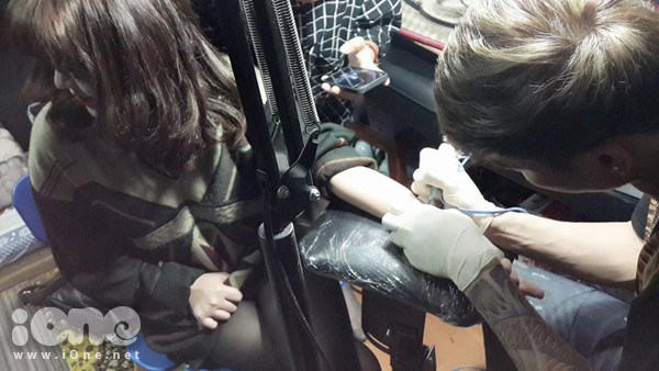 Không chỉ có con trai, quán xăm hình của 9x Hà thành cũng thu hút nhiều bạn nữ tới. Đa phần những bạn nữ xăm hình nhỏ, có nhiều người vì muốn che đi những vết sẹo do tai nạn hay những phần không đẹp trên cơ thể. Nhiều bạn lựa chọn xăm hình bé, xinh nhưng cũng không ít người vẽ lên cơ thể những hình xăm khủng.