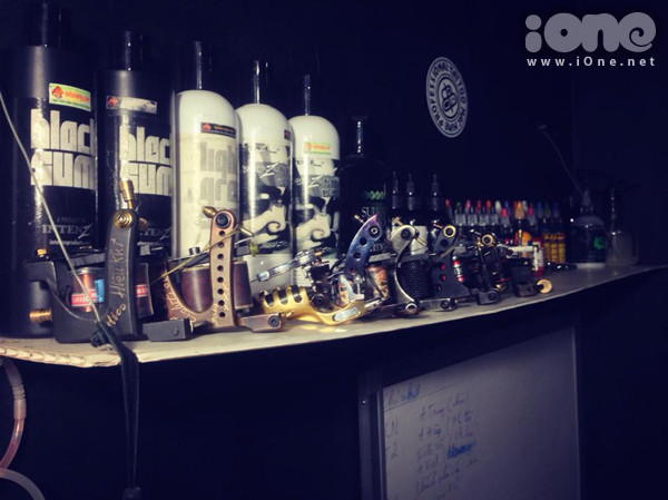 Những dụng cụ phục vụ cho việc xăm hình được anh chàng bày biện cẩn thận, chăm chút. Mặc dù mới chuyển cửa hàng tới địa điểm mới nhưng những dụng cụ xăm hình, đồ đạc đều được chàng trai sinh năm 1992 bày biện ngăn nắp, gọn gàng.