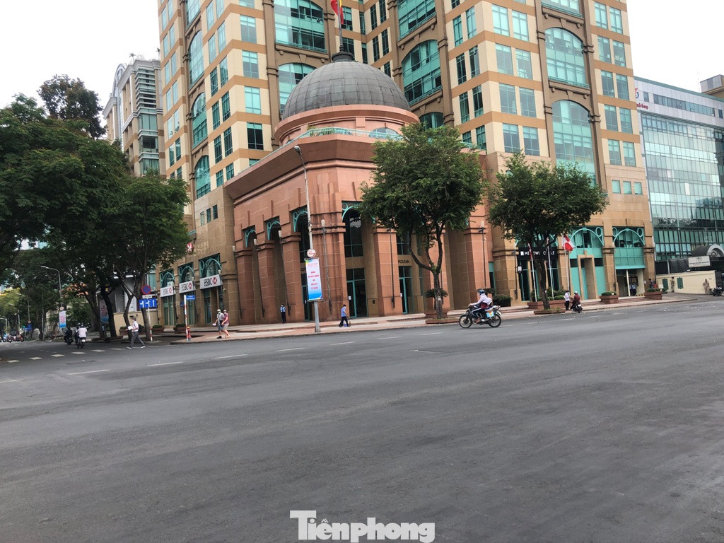 Trưa ngày 28/3, mặc dù rơi vào ngày cuối tuần nhưng nhiều tuyến đường trung tâm của TPHCM đều vắng lặng, thưa người