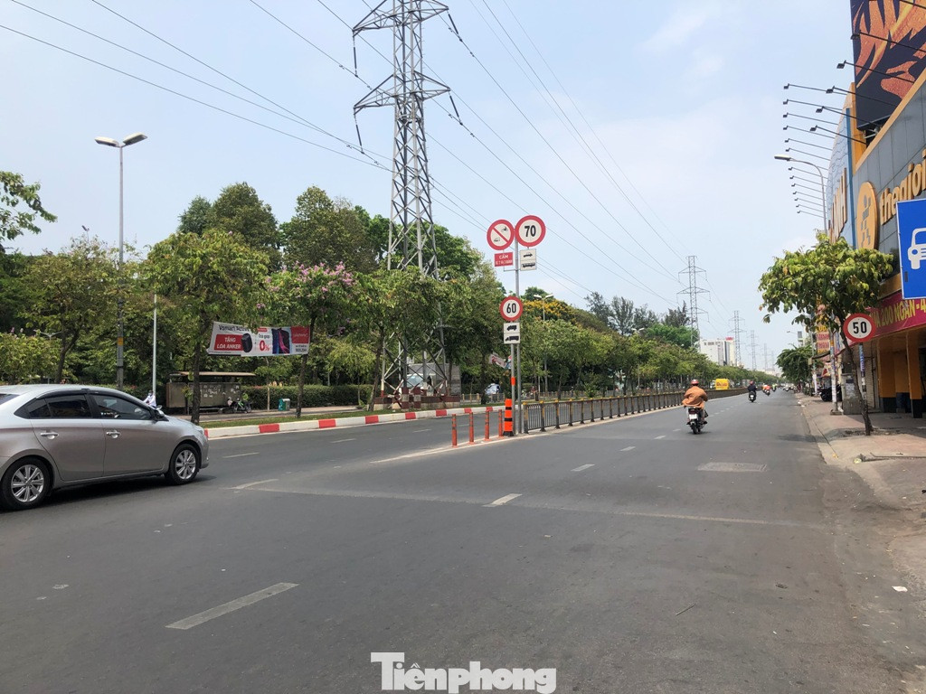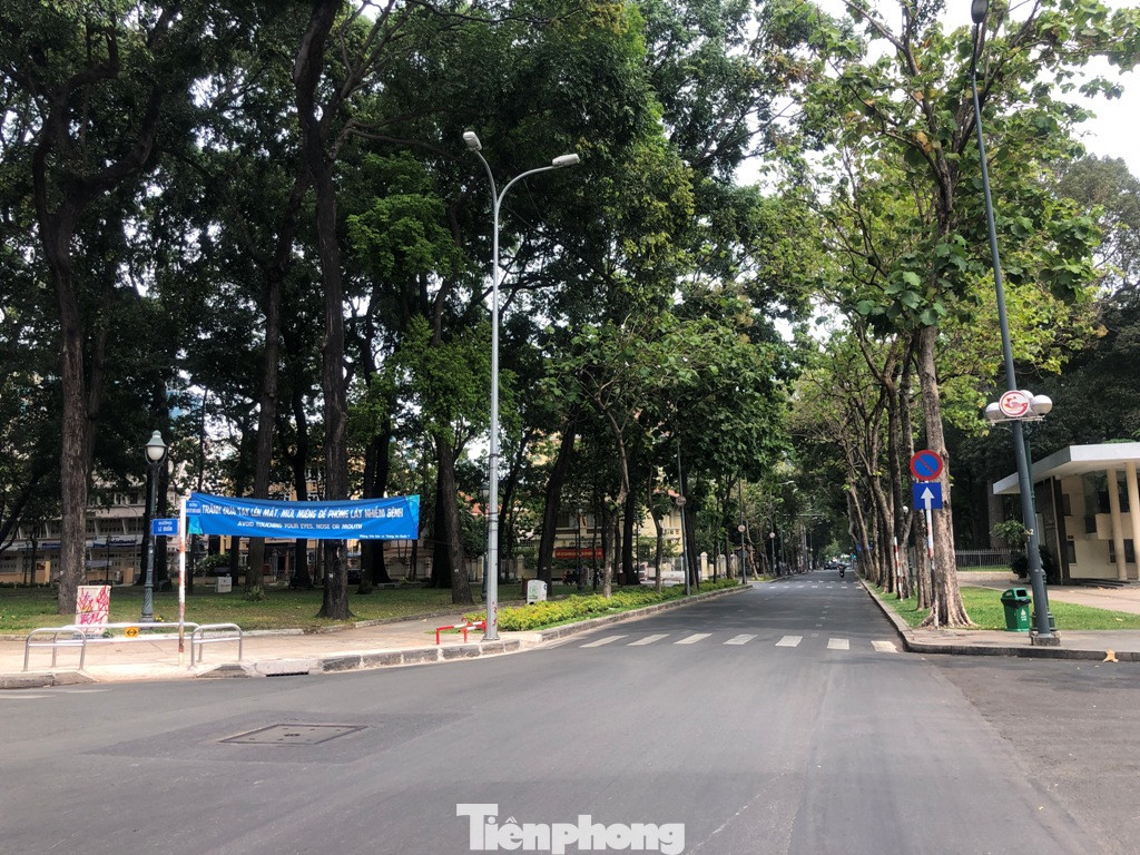 Đường Nam Kỳ Khởi Nghĩa (Q.3), hàng cây xanh hai bên đường xõa bóng mát, chỉ vài chiếc xe di chuyển qua đây. Trong khi bình thường, đây là con đường luôn trong tình trạng ùn tắc, các phương tiện đều xếp hàng nhích từng chút một khi qua đoạn đường này