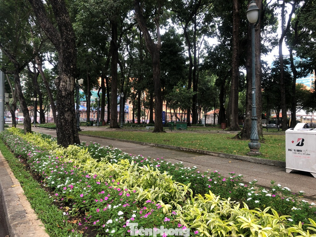 Các công viên vẫn được nhân viên công ty cây xanh chăm sóc tươm tất, muôn hoa khoe sắc thắm nhưng yên lặng đến nao lòng