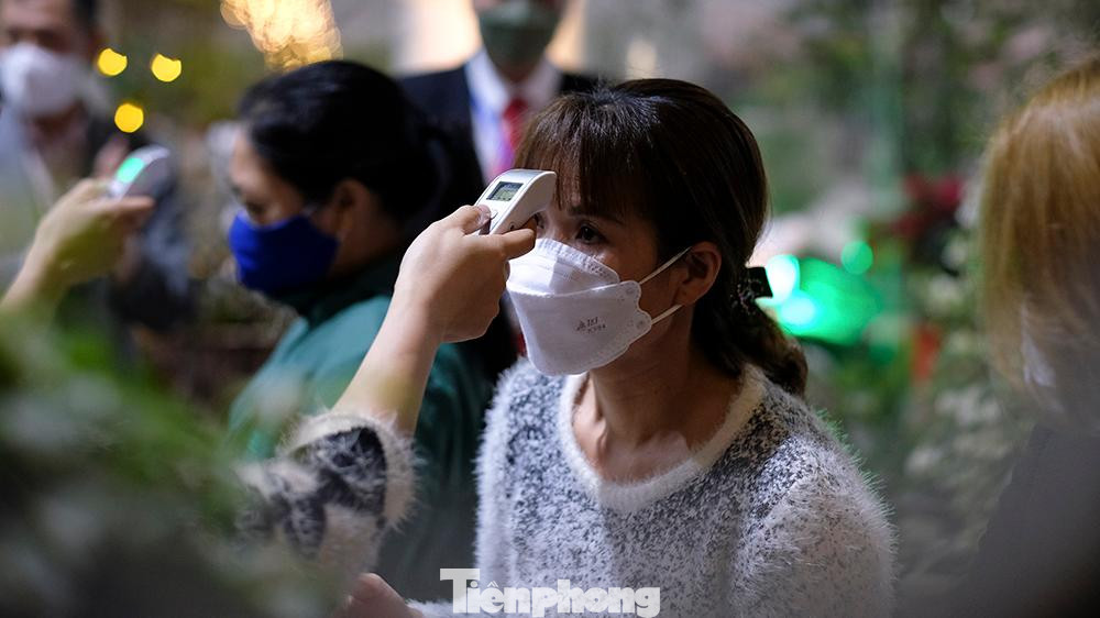 | Những người có giấy mời dự, quét mã QR code để khai báo y tế, đo thân nhiệt mới được vào nhà thờ dự lễ. |