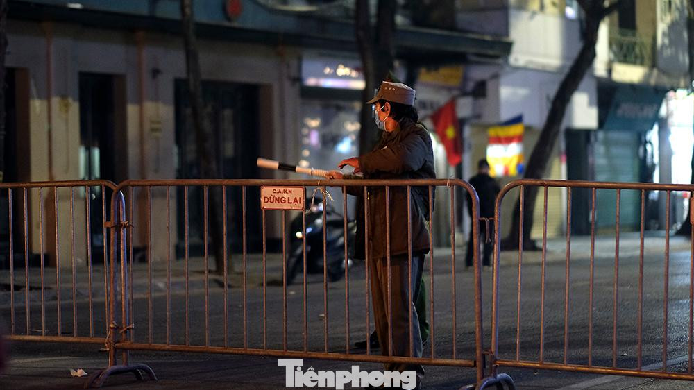 | Trong tối Noel, lực lượng chức năng đã tổ chức lập chốt, phân luồng giao thông, cấm và hạn chế một số tuyến đường trong trung tâm phố cổ (quận Hoàn Kiếm) nhằm đảm bảo an ninh và an toàn phòng chống dịch COVID-19. |