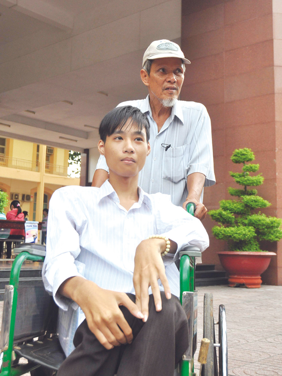 Mùa thi năm nay, ông gom góp tiền lương hưu, đưa cháu xuống thành phố dự thi. Ông đẩy xe đưa Trung vào phòng, ổn định chỗ ngồi cho cháu rồi mới xuống cổng ngồi chờ.