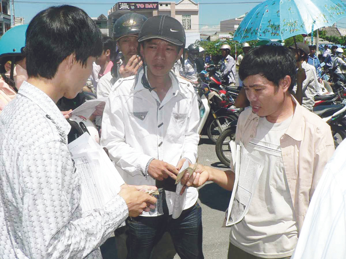 Tấm giấy nhỏ bằng lòng bàn tay nhưng đó lại là vật bất ly thân của nhiều phụ huynh và sĩ tử nghèo tại điểm thi trường Đại học Sư phạm TPHCM.