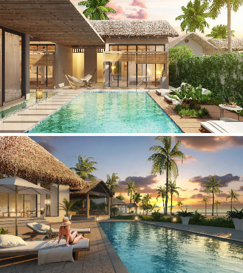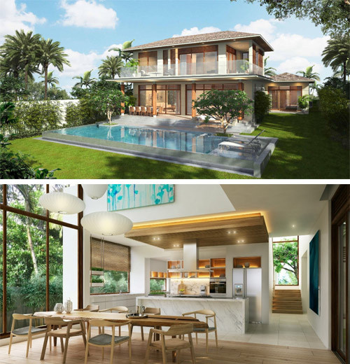 Phú Quốc: Căn biệt thự nghỉ dưỡng có giá từ 16 tỷ đồng với thiết kế hiện đại nhưng vẫn mang nét thân thiện với không gian thiên nhiên ở đảo. Ngoài tiện nghi trong khuôn viên như bể bơi, sân vườn rộng, chủ nhà còn tận hưởng các tiện ích chung như nhà hàng, quán bar, câu lạc bộ bên hồ bơi, phòng tập gym... Ảnh: SPV.