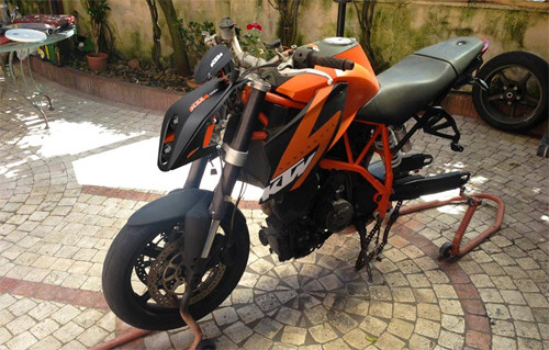 KTM 1290 Super Duke R trong quá trình làm đèn pha mới và độ một số chi tiết.