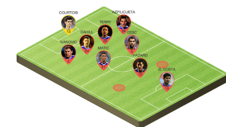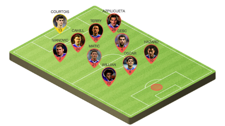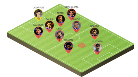 Trong khi đó, vai trò dẫn dắt lối chơi của Chelsea được chuyển sang cho Eden Hazard, người đã được HLV Mourinho thử nghiệm trong vai trò “số 10” ở mùa giải này (nhưng chưa thành công). Khi ấy, tiền vệ người Bỉ có thể chơi lệch cánh trái quen thuộc hoặc tráo vị trí cho Pedro để bó sâu vào trung lộ.