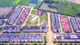 "Đây là trận lụt đầu tiên của năm 2017. Năm trước nhà tôi cũng từng xảy ra hiện tượng nước ngập kín tầng hầm, nên sáng nay khi mưa lớn thì hai vợ chồng kéo bao cát và căng bạt che chắn làm đập không cho nước tràn vào nhà", chủ một căn nhà trong khu đô thị cho biết.