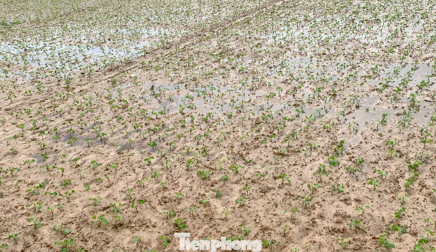 Tại xã Cát Hiệp (huyện Phù Cát, Bình Định), một số diện tích đất lúa gieo sạ 1 vụ chuyển sang trồng đậu phộng bị ngập.