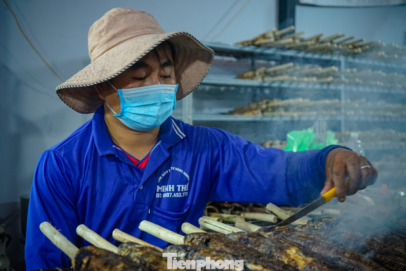 | Do người dân đi mua cá quá đông, các cửa hàng phải huy động hàng chục người làm việc. Người nướng cá phải khéo léo, trở tay đều để cá không bị cháy. |