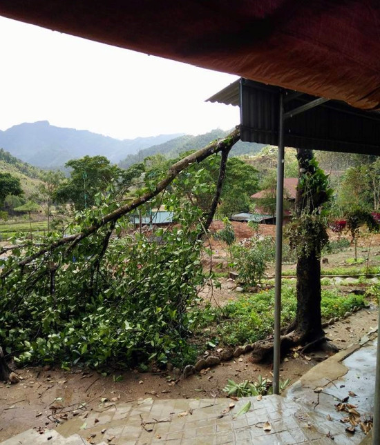 Tại xã Mai Sơn, có 11 nhà thuộc hai bản Chà Lò 1 và Chà Lò 2 bị tốc mái, trong đó có một nhà bị sập hoàn toàn. Rất may không có thiệt hại về người.