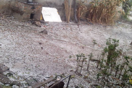 Trận mưa đá kéo dài khoảng 15 phút. Ảnh: Đức Hiệp.