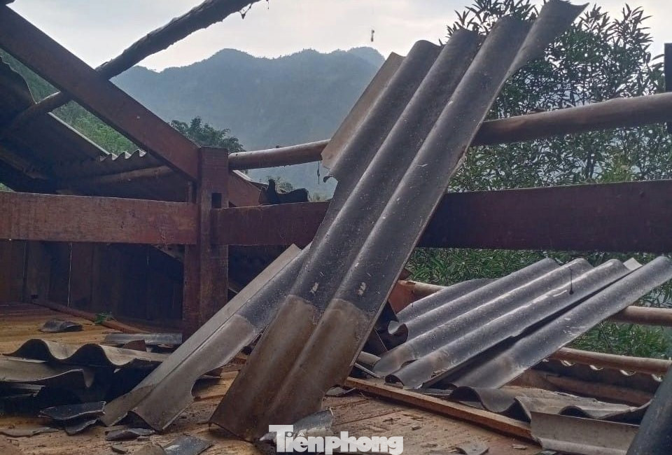 | Trong khi đó, mưa to kèm dông lốc xảy ra trên địa bàn huyện Văn Chấn khiến nhiều ngôi nhà bị tốc mái, hư hỏng, cây cối gẫy đổ. |