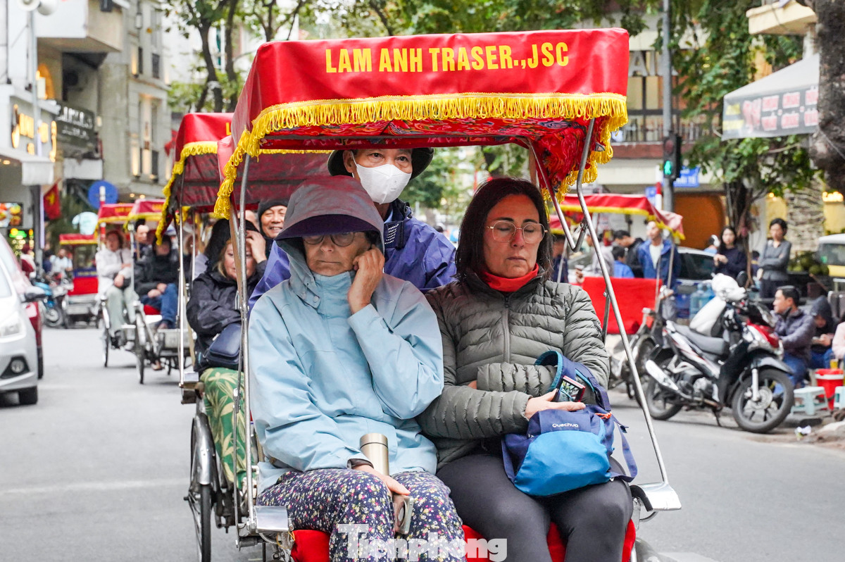Du khách đã kịp trang bị áo khoác và nhiều phụ kiện giữ ấm để tham quan Thủ đô và tận hưởng không khí đặc trưng của mùa đông Hà Nội.