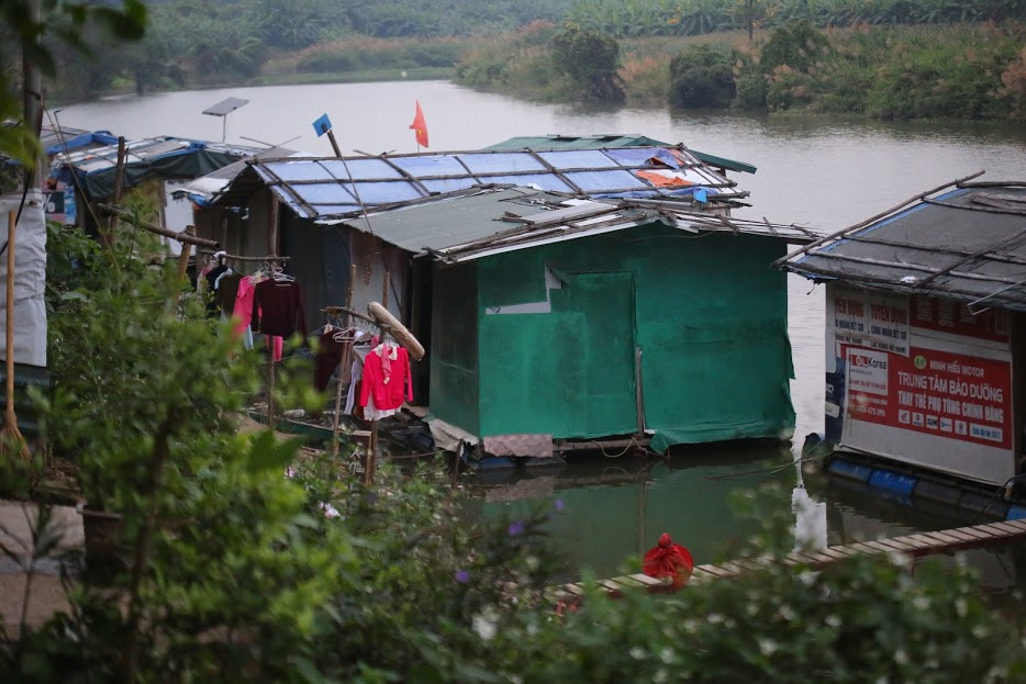 Nghe hàng xóm kể, ông Nguyễn Văn Bình (SN 1951) nói với sang: “Không biết trên bờ thế nào chứ nhà dưới nước như chúng tôi lạnh lắm. Ba bố con đeo đến 4 lớp tất đi ngủ mà vẫn bị cước chân. Trước tôi cũng có nhà, có đất ở Đông Sơn (Thanh Hóa) nhưng vì mẹ bị ung thư nên bán hết để chạy chữa. Năm 1991 tôi đưa con ra đây rồi ở lại. Bao năm rồi nghèo vẫn cứ nghèo; hai thằng con tôi đều ngót ngét 30 mà vẫn chưa lấy được vợ; nói mà tủi thân nhưng nhà chẳng có, hộ khẩu cũng không, chúng nó đi làm xe ôm, giao hàng chạy bữa thì ai chịu về làm dâu”.
