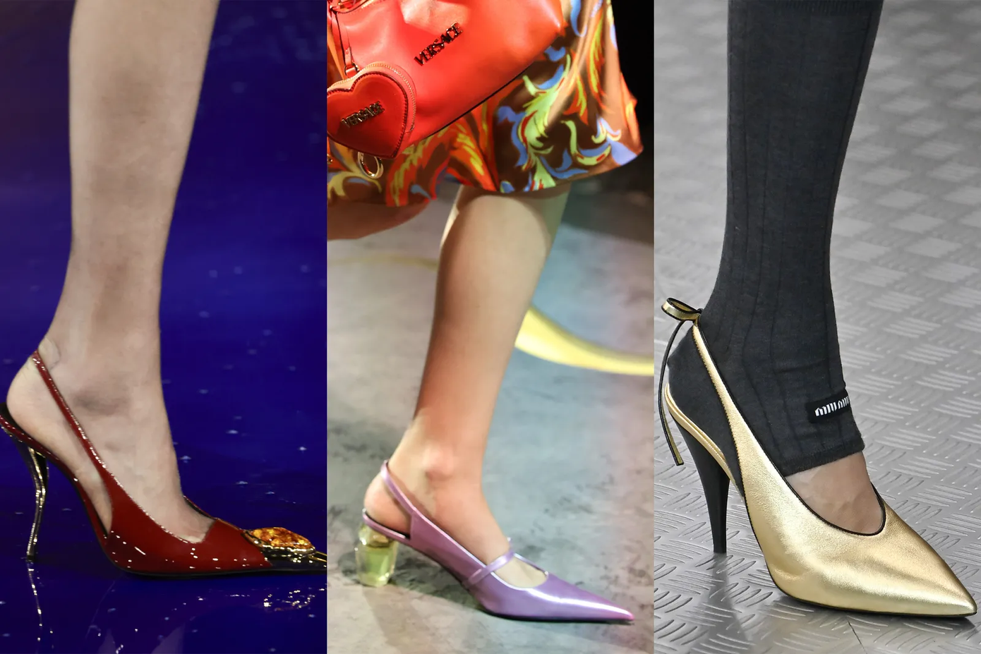 Giày cao gót có quai hậu là một trong những kiểu giày thời trang hot nhất hiện nay và các nhà thiết kế đang bắt đầu đưa những điểm nhấn táo bạo hơn vào thiết kế giày của họ. Ví dụ như Saint Laurent và Versace mùa này, những điểm nhấn bằng đá quý hay thêm chi tiết nơ vào chiếc quai hậu đã đem lại nhiều ấn tượng và khiến đôi giày bắt mắt hơn bội phần. Hay tại Miu Miu, những đôi giày được trang trí bằng ngọc trai, tôn lên sự thanh lịch và thanh thoát của chúng.