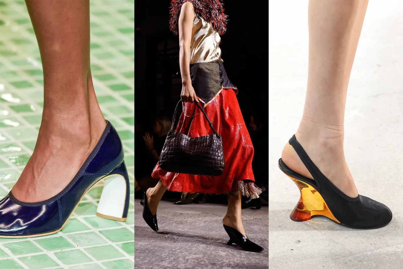 Cả giày đế xuồng và giày cao gót đều được các nhà mốt làm mới theo phong cách gót có độ cong rõ rệt, khác biệt với gót giày thẳng như trước đây. Kiểu gót cong không lạ với các tín đồ mê giày, nhưng nó vẫn mang lại một làn gió mới cho vòng xoay xu hướng 2025. Kiểu giày này giúp bạn thêm chút điểm nhấn hấp dẫn cho trang phục của mình mà không tốn nhiều công sức.