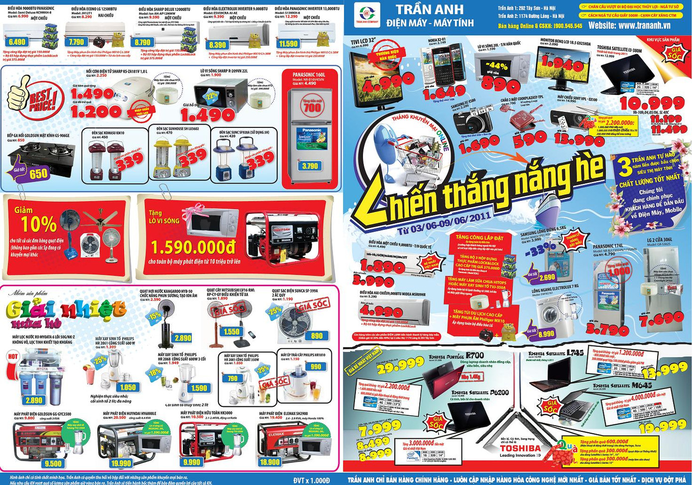 - Laptop: rất nhiều phần quà hấp dẫn với tuần lễ Toshiba như: tặng tới 3.000.000 đồng cho Toshiba Satellite P6200 với giá còn từ 7.999.000 đồng; tặng 4.000.000 đồng cho Toshiba Satellite M645 còn 19.999.000 đồng. Trần Anh đảm bảo bán hàng chính hãng với giá rẻ nhất Việt Nam với dòng sản phẩm này.