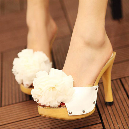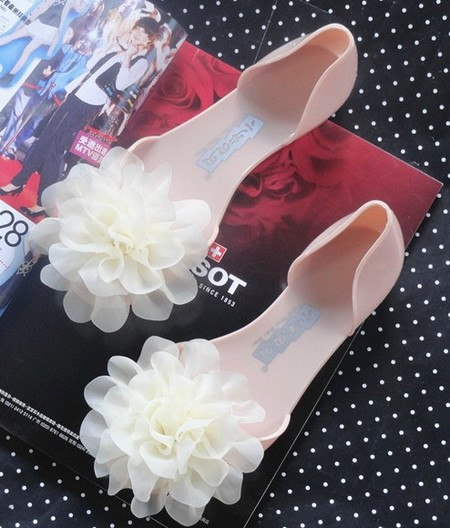Những đôi giày hay sandal đính hoa màu trắng hoặc màu pastel nữ tính rất phổ biến và được lựa chọn nhiều hơn cả bởi mẫu mã phong phú, dễ kết hợp. Cùng với các chất liệu đi kèm như hạt pha lê, ngọc trai, ren, những bông họa lụa, chiffon đính trên giày giúp bạn gái thêm lãng mạn, ngọt ngào.