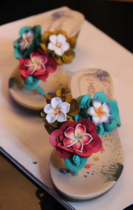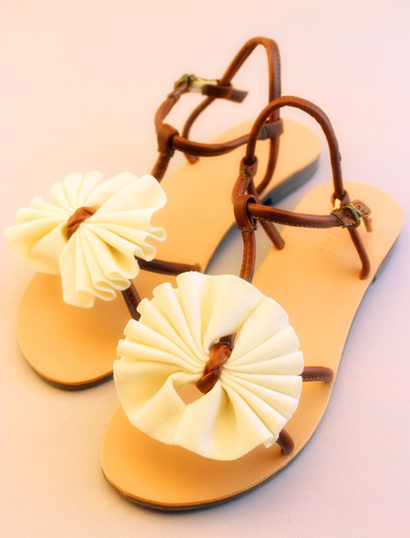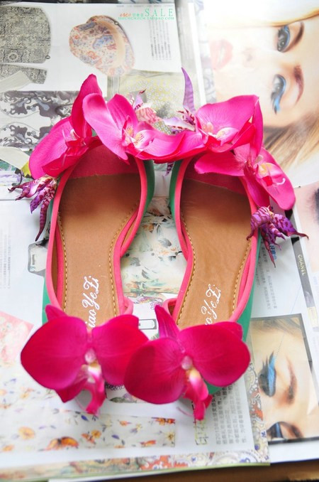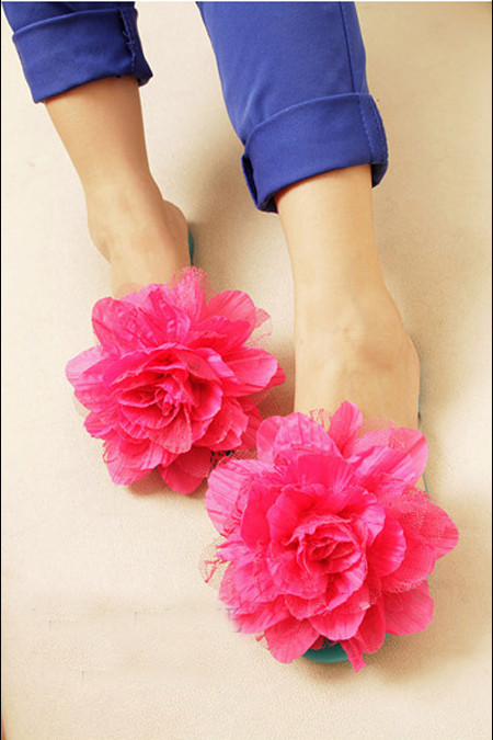 Những đôi dép, sandal được thiết kế điểm hoa được khá nhiều cô gái ưa chuộng bởi nó có thể làm nên nét duyên cho đôi chân con gái, tươi tắn và đầy phong cách. Hoa thường được đính ở gần mắt cá chân và mũi giày – hai vị trí nổi bật, thu hút sự chú ý của người đối diện.