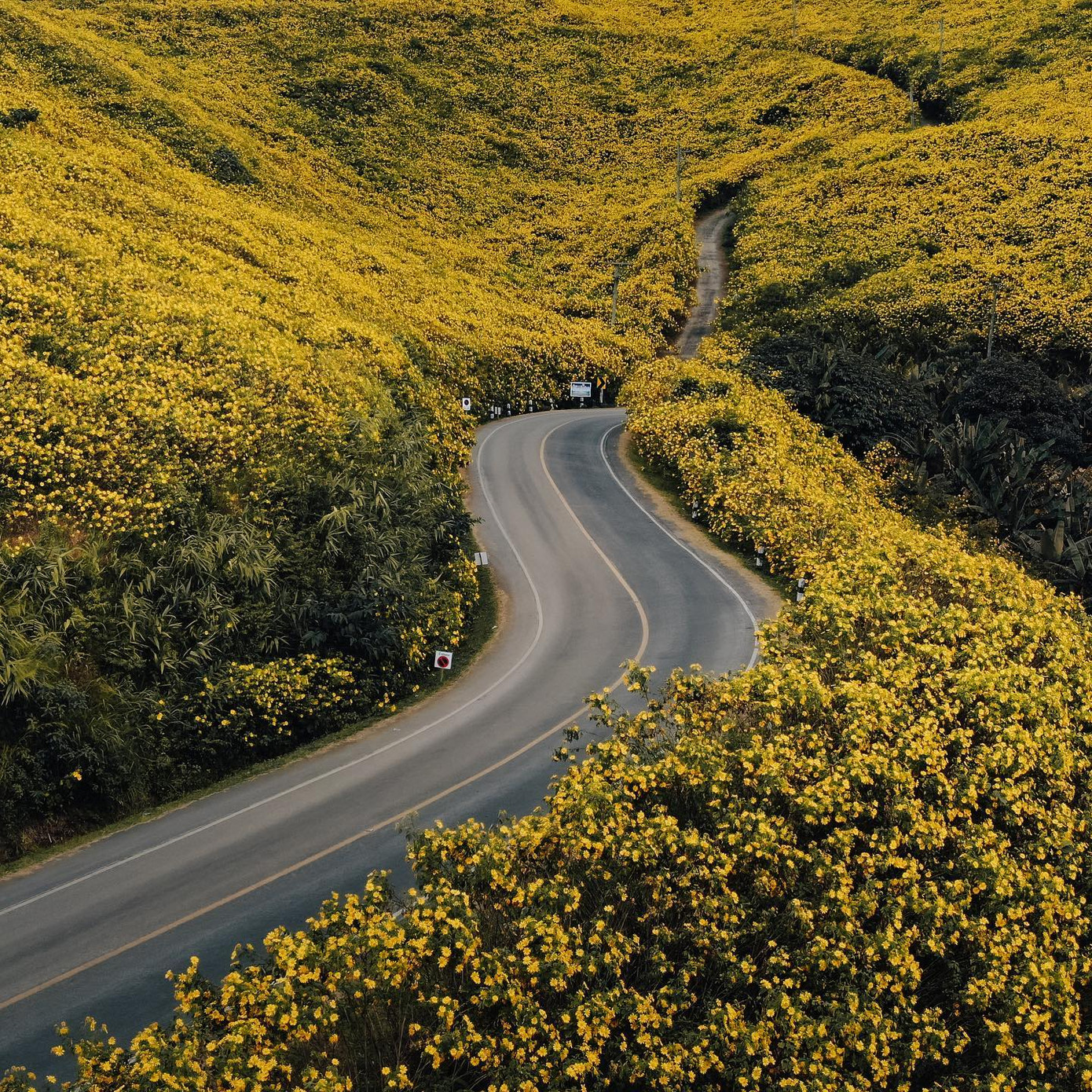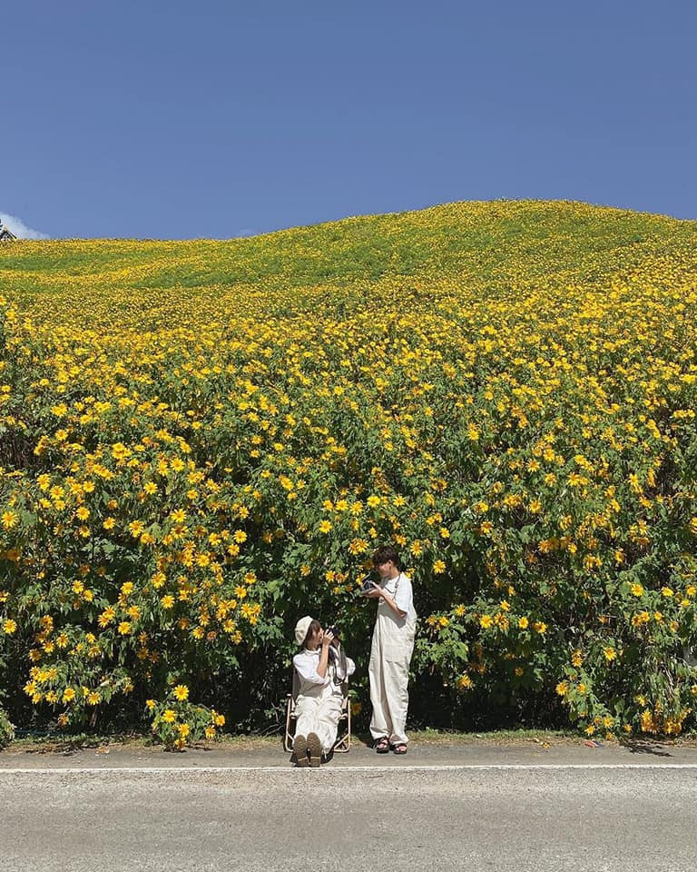 Cũng là hoa dã quỳ nhưng nếu bạn muốn tìm một background lạ và rộng hơn, có thể bay tới đồi Mae U Ko ở thị trấn Pai, nằm ở tỉnh Mae Hong Son, phía Bắc Thái Lan. Không tập trung ở một khu vực nhỏ, hoa dã quỳ ở đây phủ kín đồi, tạo thành một thảm vàng khổng lồ.