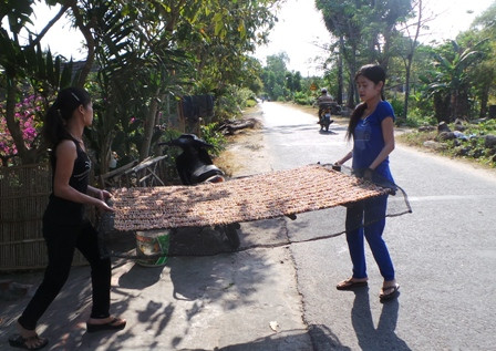 Công đoạn này rất mất nhiều công sức nhưng để cho các "vũ nữ chân dài"... dài miên man thì người dân phải xếp từng con một như thế này