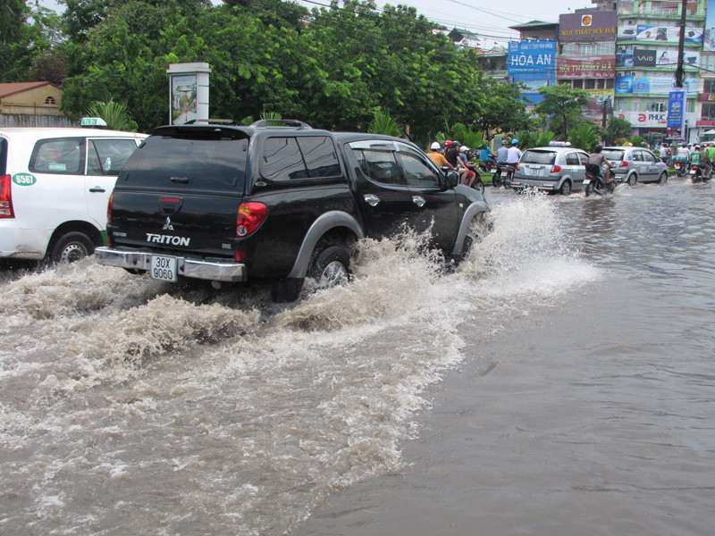| Sóng nước trên đường giống như sóng trên mặt sông. Ảnh: Trường Phong. |