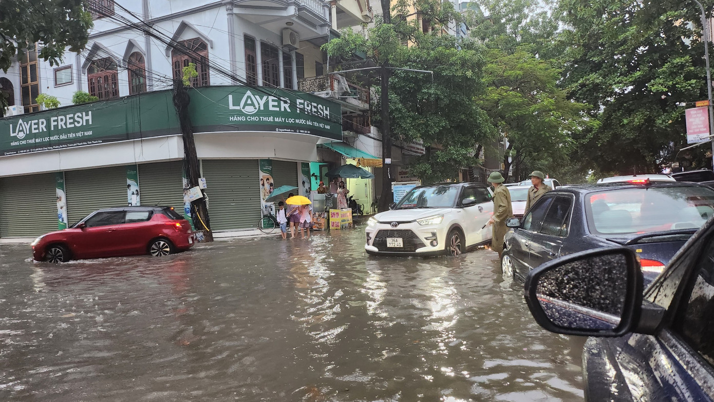 | Tình trạng ngập lụt diễn ra ở nhiều khu vực phường Đông Vệ, thành phố Thanh Hoá. |