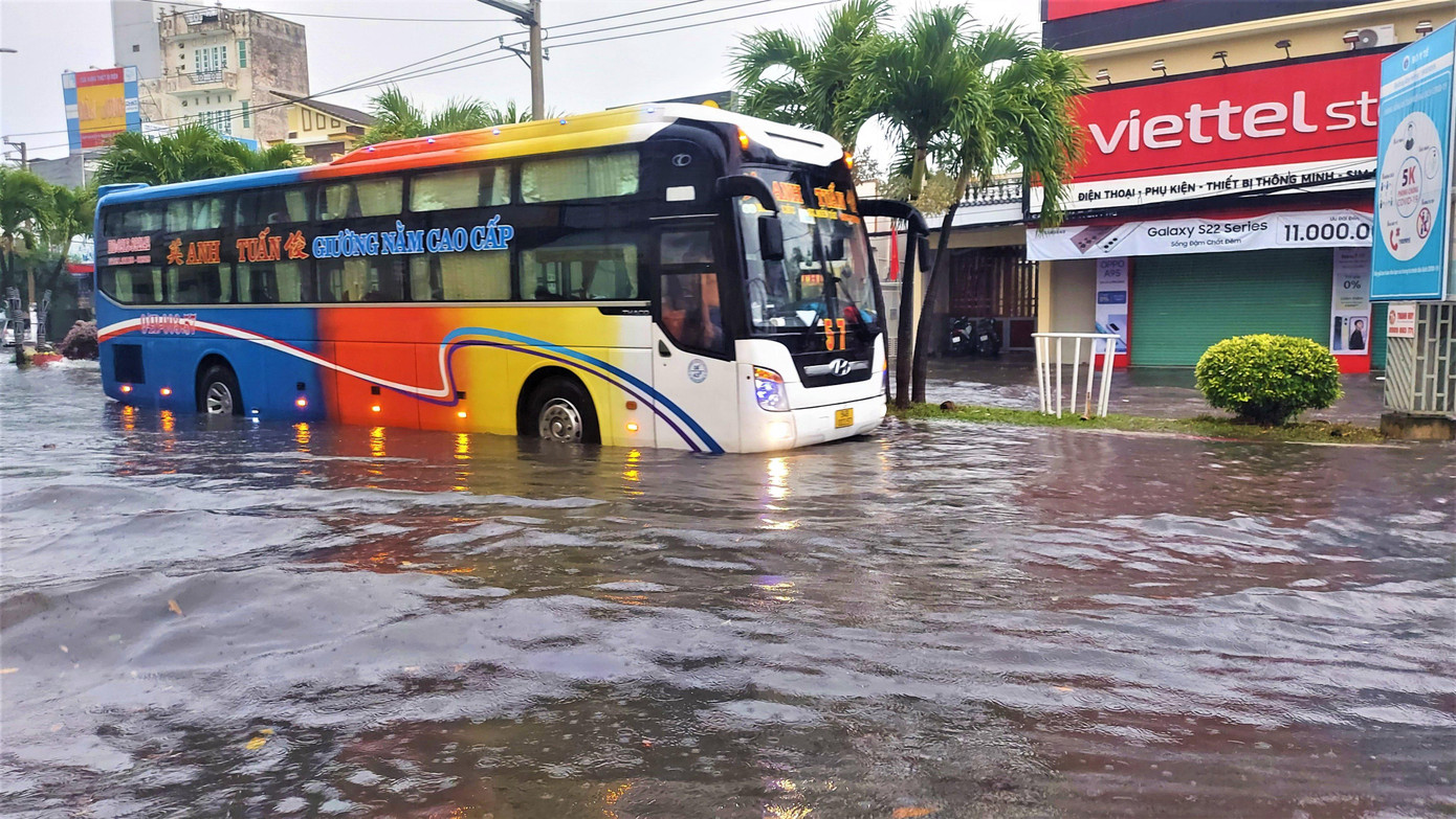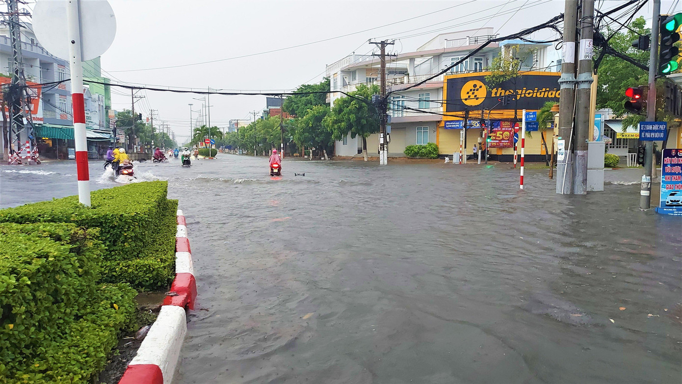 Đến trưa cùng ngày, dù mưa đã ngớt nhưng nhiều tuyến đường vẫn còn ngập sâu.