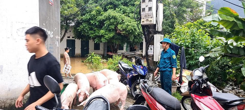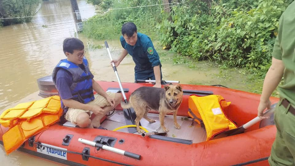 | Những chú chó, lợn đáng thương cũng được lực lượng chức năng cứu giúp. |