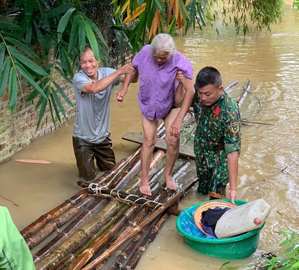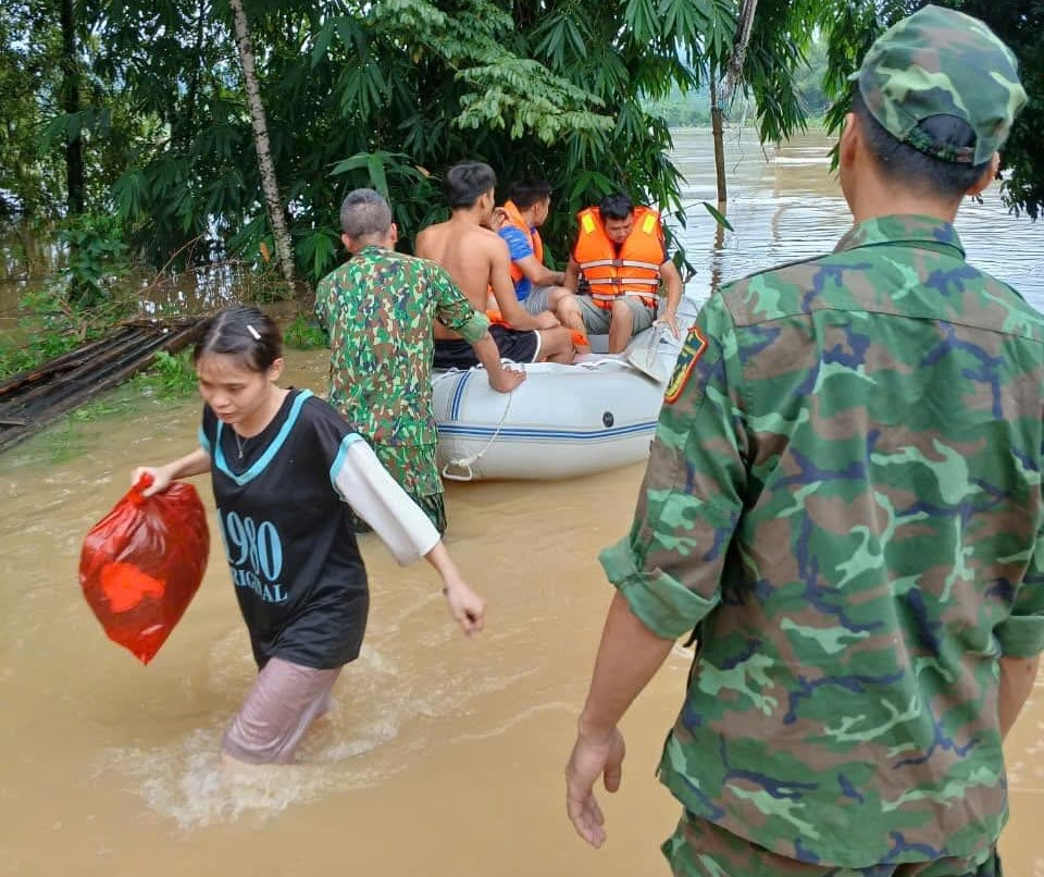 | Lực lượng Quân đội tăng cường quân số chung tay giúp sức di dời người, đồ đạc đến nơi an toàn. |