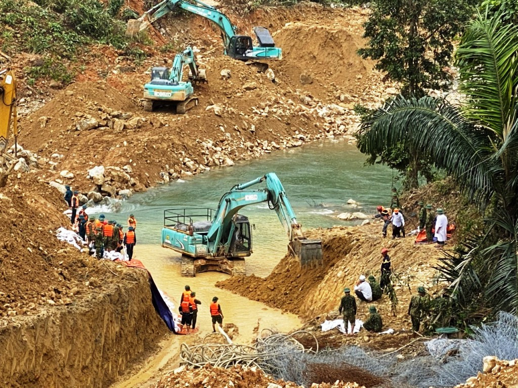 Theo kế hoạch, việc đắp đập, ngăn dòng dự kiến hoàn thành vào chiều tối 21/11, để hôm nay, 22/11, lực lượng cứu hộ, cứu nạn chuyển sang công tác thi công, đào đất lòng sông Rào Trăng đã được khoanh vùng phục vụ tìm kiếm 12 người còn mất tích.