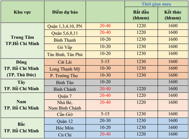 Nguồn: Đài khí tượng thuỷ văn khu vực Nam Bộ