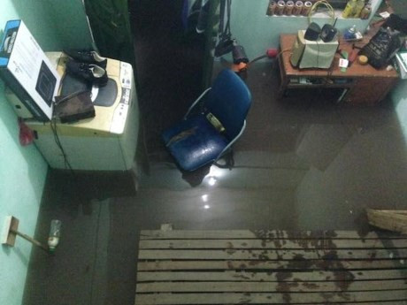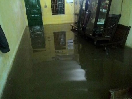 Nước bắt đầu tràn vào nhà người dân ở ngõ Thịnh Hào. Ảnh: otofun