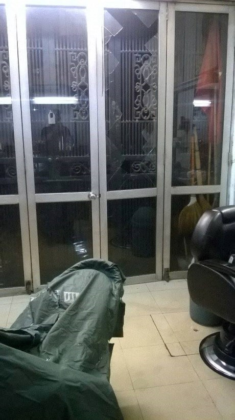Chủ nhân của ngôi nhà trên đường Minh Khai, đoạn gần chân cầu Vĩnh Tuy cho biết nước ngập và xe ôtô chạy nhanh qua đã tạo sóng đập vỡ cửa kính. Ảnh: otofun