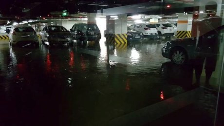 Hầm gửi xe ở một khu đô thị thuộc quận Hai Bà Trưng cũng đã xuất hiện nước. Ảnh: otofun