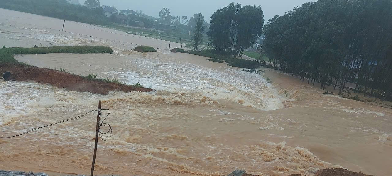 Chủ tịch UBND xã Thái Thuỷ Lê Thuận Văn cho biết, đê quai (đê phụ phục vụ thi công) của đập Lam bị vỡ.