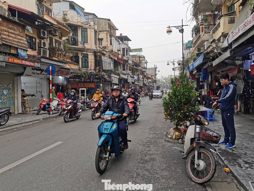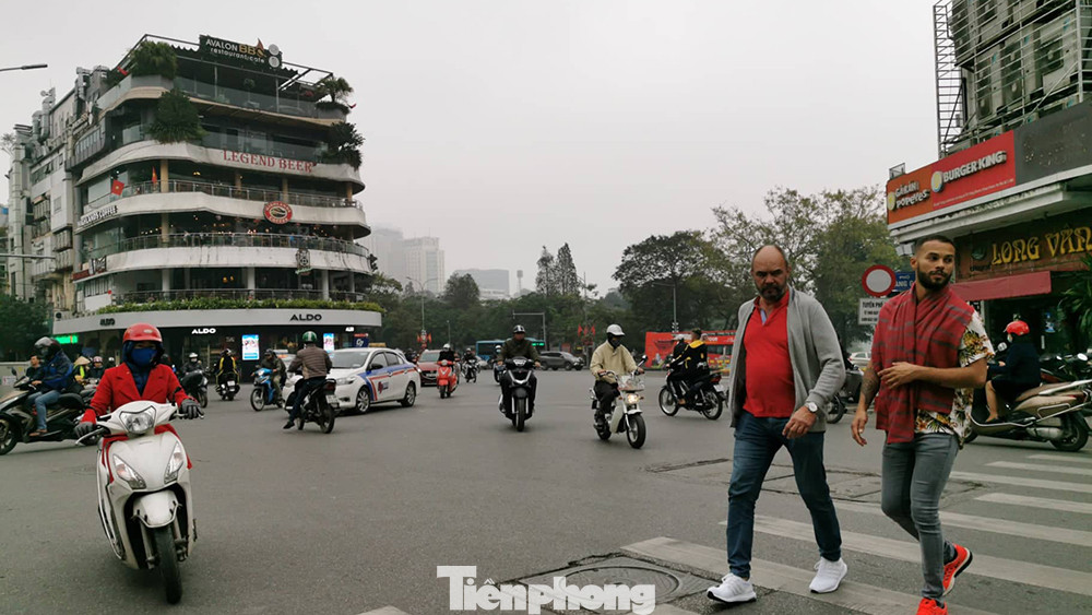Đường phố Hàng Ngang, Hàng Đào sáng nay vắng vẻ hơn ngày thường. Càng về trưa, bầu trời bắt đầu quang đãng, tầm nhìn được cải thiện rõ rệt.