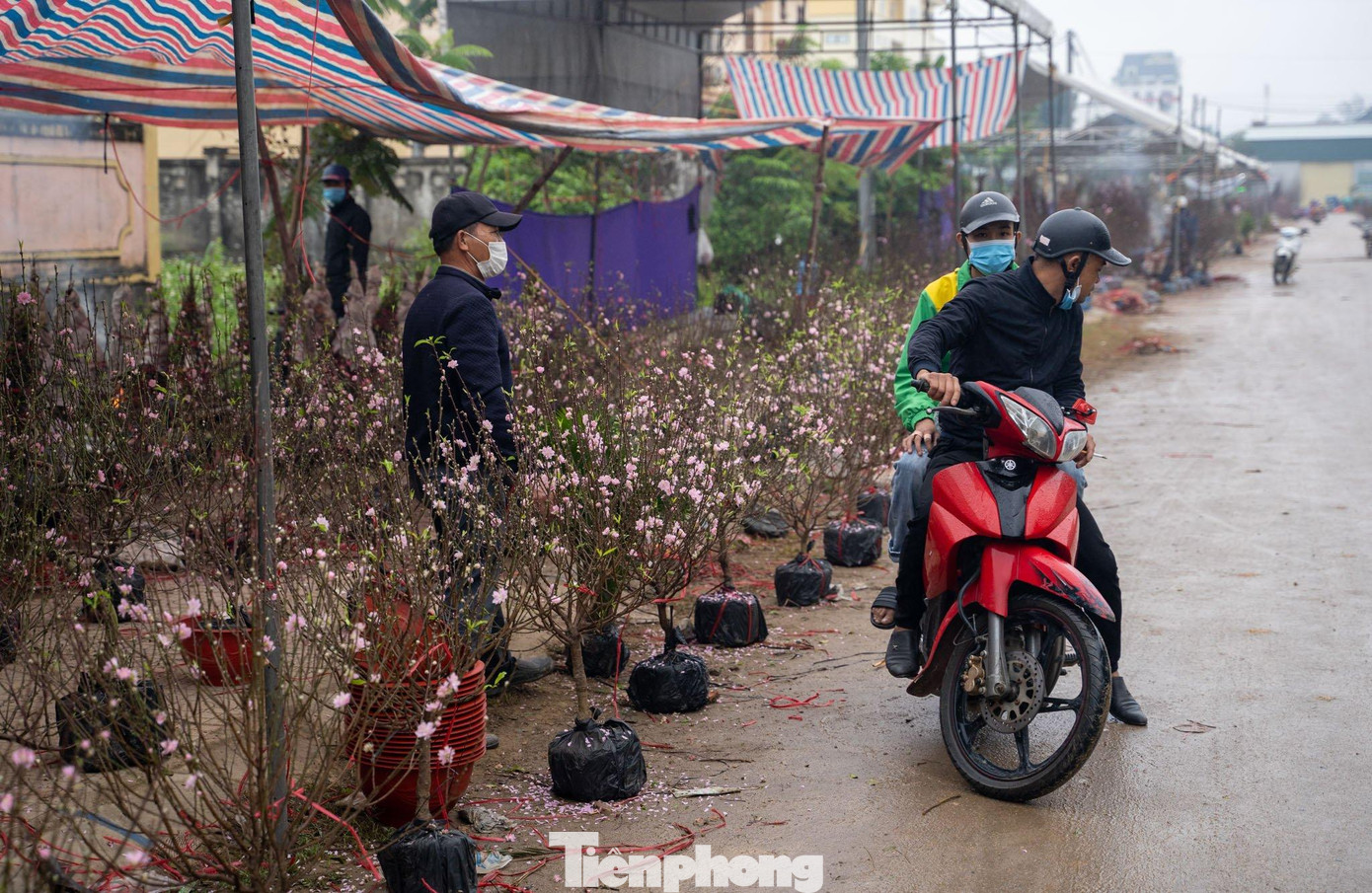 | Một số tiểu thương “bỏ của chạy lấy người”, vứt lại những cành đào mà chỉ vài ngày trước có giá tiền triệu. |