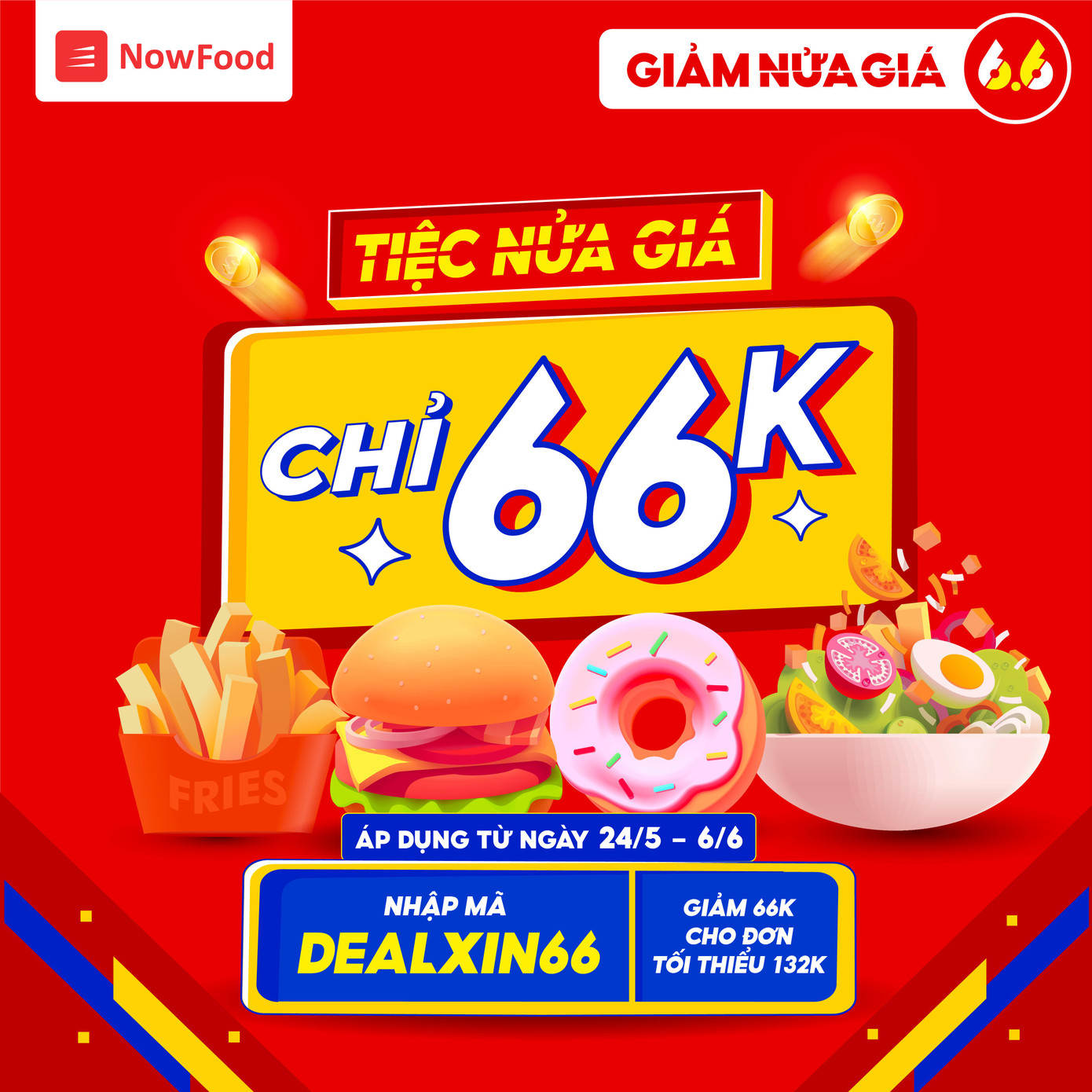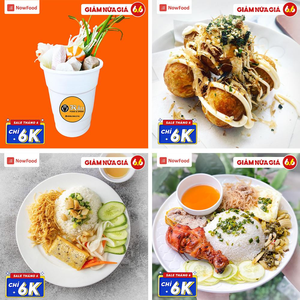 Tháng 6 cũng là mùa sale giữa năm, vì thế NowFood đang tung ra hàng loạt chương trình hấp dẫn trong sự kiên Sale giữa năm, giảm nửa giá này, như “Sale tháng 6 chỉ 6k” hay “Tiệc nửa giá, chỉ 66k” với hàng loạt món phong phú hấp dẫn từ các hàng quán xịn sò, hãy lướt NowFood để khám phá, bạn nhé.