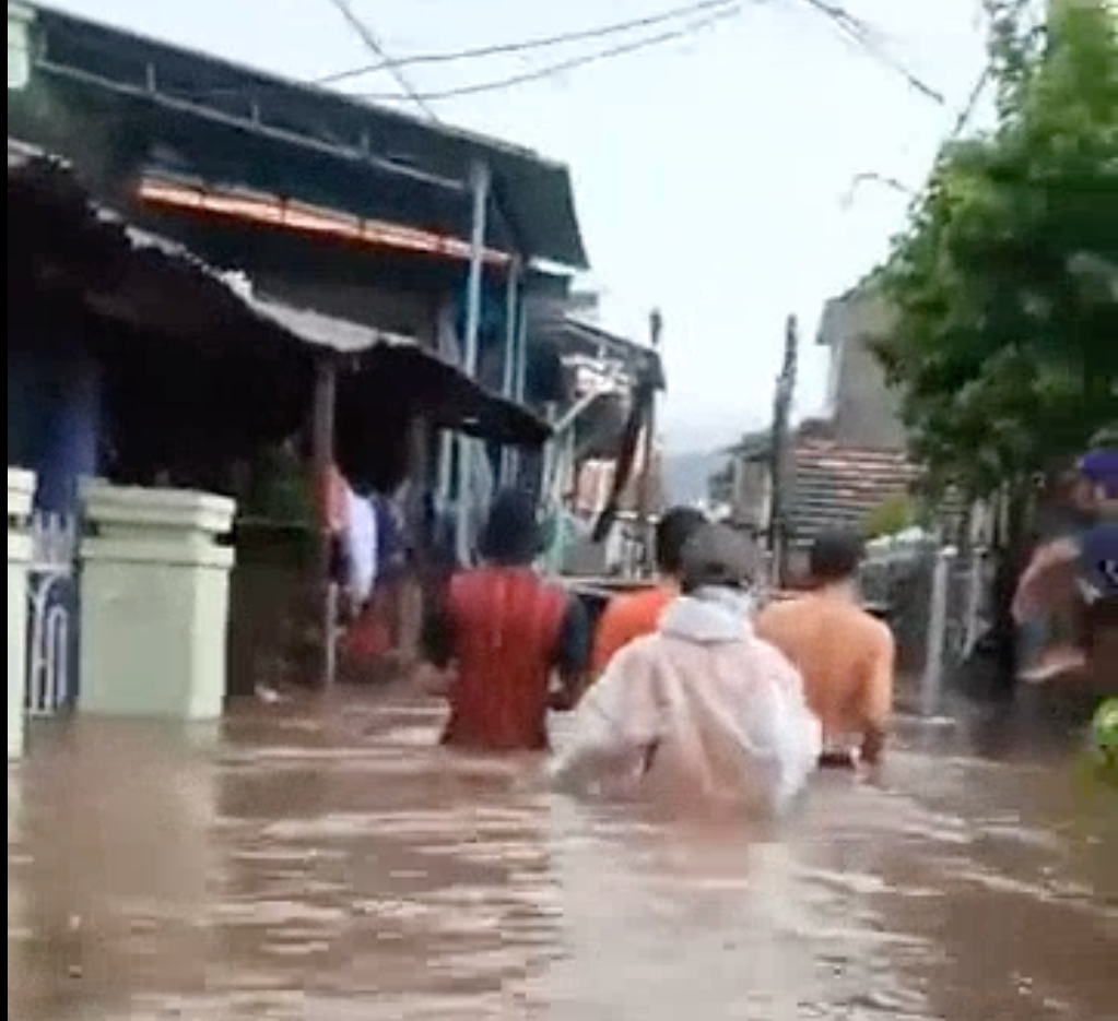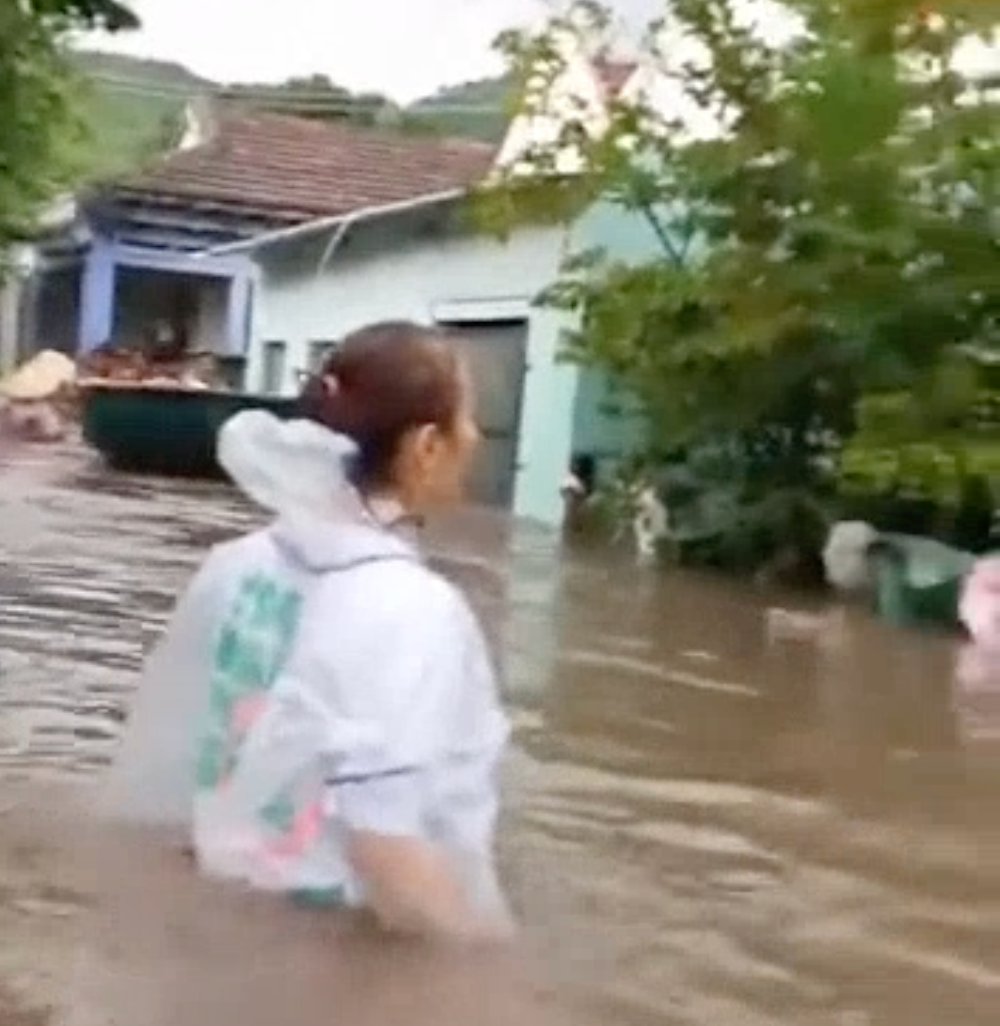 | Mưa lớn làm nhà dân ở thôn Bãi Giếng ngập sâu trong nước. Ảnh MXH |