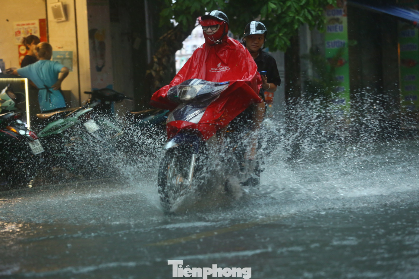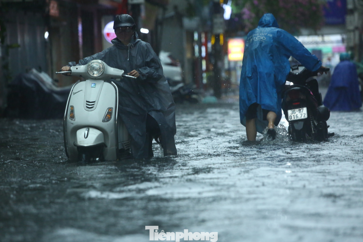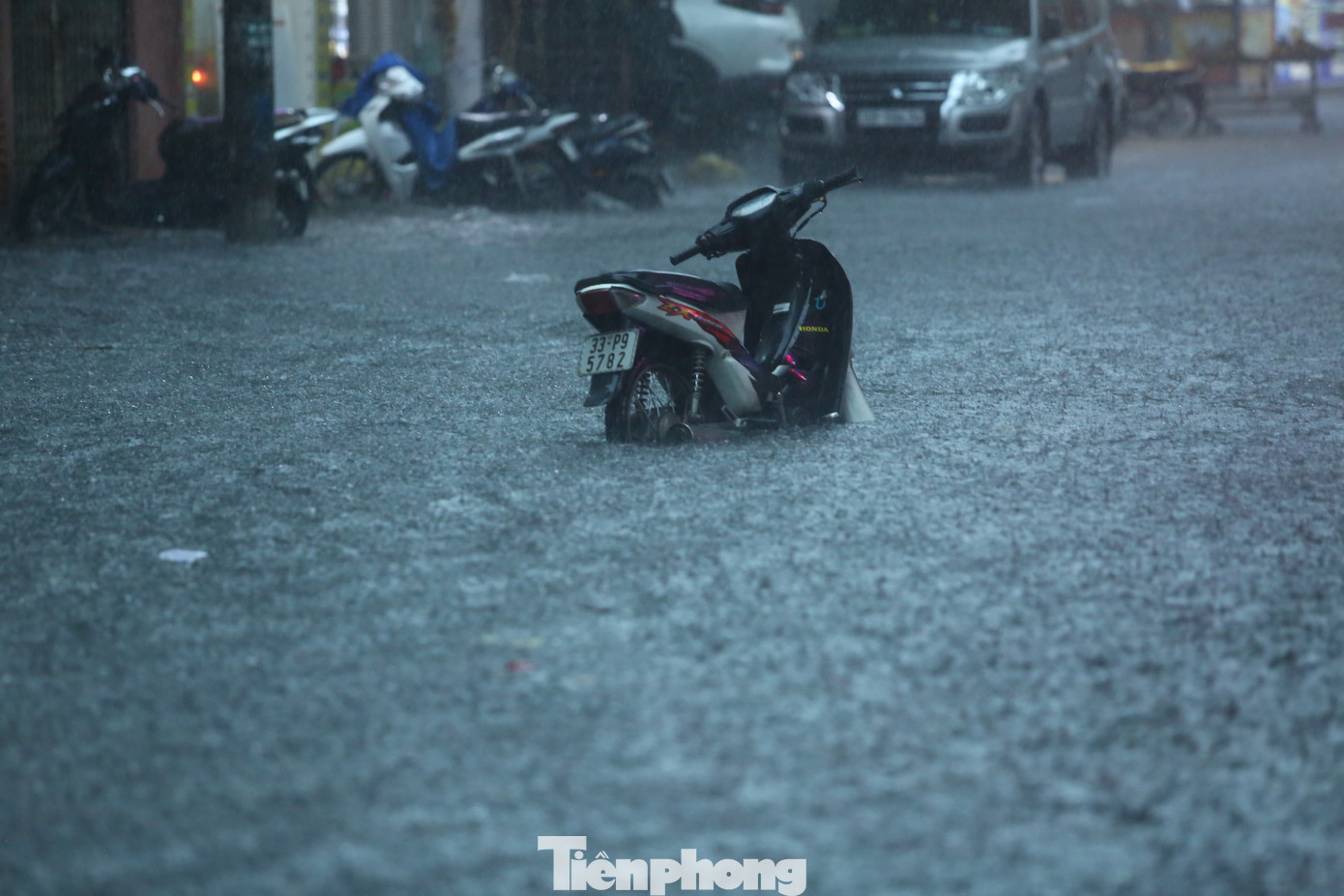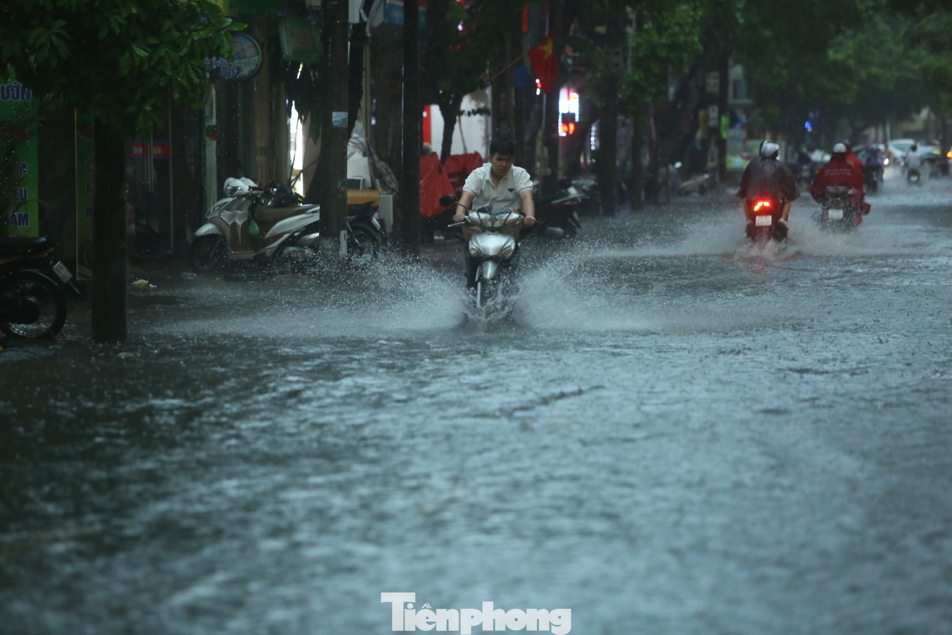 | Hình ảnh trên phố Hoàng Văn Thái (quận Thanh Xuân, Hà Nội) chỉ sau 15 phút mưa lớn. |