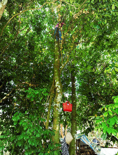 Tùy vào thời điểm và tùy từng lô hàng, giá bán bòn bon 10.000-30.000 đồng mỗi kg. Loài trái cây này rất dễ bị thâm tím, hư hỏng khi va chạm nên người dân rất cẩn thận trong lúc thu hái.