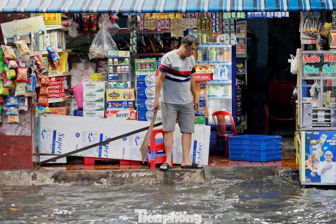 | Nhiều hàng quán trên đoạn đường Cây Trâm cũng bị ảnh hưởng do ngập nặng. |