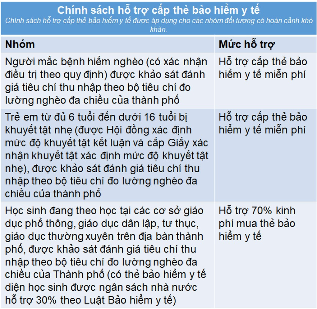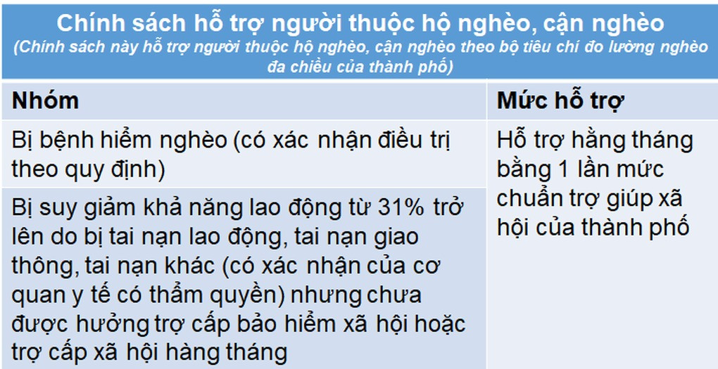 Chính sách này hỗ trợ người thuộc hộ nghèo, cận nghèo theo bộ tiêu chí đo lường nghèo đa chiều của thành phố.