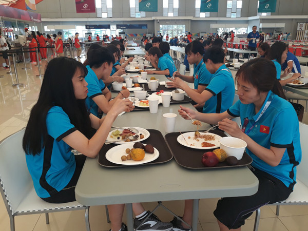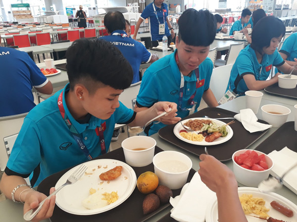 Sáng nay (14/8), HLV Mai Đức Chung cho phép các cầu thủ được nghỉ ngơi và ăn sáng muộn hơn thường ngày sau một ngày di chuyển dài khá mệt.