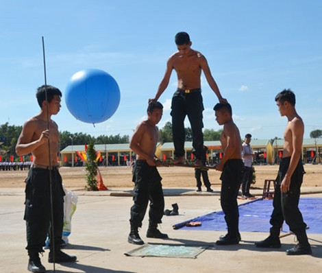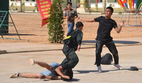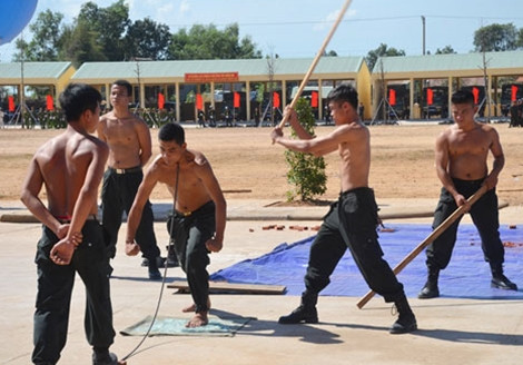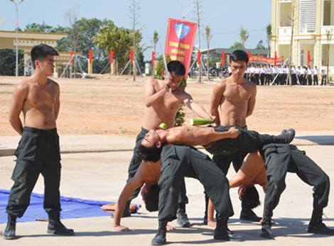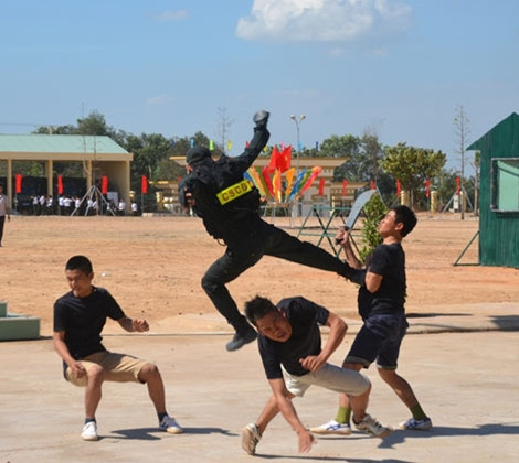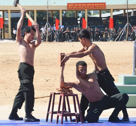 Tiếp đến, màn biểu diễn khí công, võ thuật nghiệp vụ của CSCĐ khiến cho người xem hồi hộp, căng thẳng vì những miếng đánh “rợn người”.