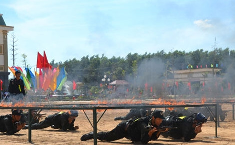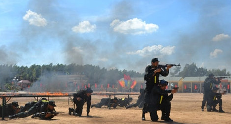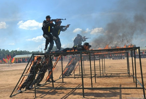 Trên thao trường, tình huống giả định, kẻ khủng bố bắt cóc con tin cố thủ trong một khu nhà dùng súng chống trả. Nhiệm vụ CSCĐ vừa khống chế kẻ khủng bố kết hợp lực lượng tinh nhuệ áp sát mục tiêu giải cứu con tin với rất nhiều chướng ngại vật nguy hiểm. Áp dụng chiến thuật đặc nhiệm, đánh đối kháng, lao vòng lửa, tiếp cận mục tiêu, giải cứu con tin. Dưới đây mà màn biểu diễn của Trung đoàn CSCĐ Đông Nam bộ vào tháng 12-2015 nhân kỷ niệm 5 năm thành lập.